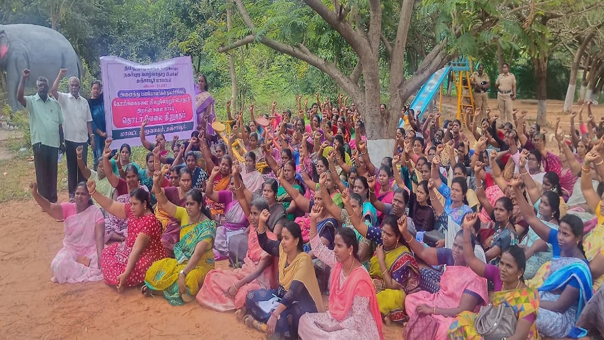 சங்க தலைவர் வசந்தா தலைமை வகித்து பேசினார். செயலாளர் சரிதா முன்னிலை வகித்தார். பொருளாளர் விஜி, இணைச் செயலாளர் ராதிகா ஆகியோர் கோரிக்கைகளை விளக்கி பேசினர்.