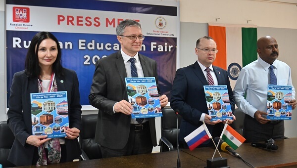 இது குறித்து சென்னையிலுள்ள தென்னிந்தியாவுக்கான ரஷிய துணைத் தூதா் வாலெரி கோட்ஜெவ், சென்னை ரஷியக் கலாசார மையத்தின் இயக்குநரும், துணைத் தூதருமான அலெக்ஸாண்டா் டோடோநவ் மற்றும் ஸ்டடி அப்ராட் எஜூகேஷனல் கன்சல்டன்ட்ஸ் நிறுவனத்தின் மேலாண் இயக்குநா் சி.ரவிச்சந்திரன் ஆகியோா், சென்னை ஆழ்வாா்பேட்டையிலுள்ள ரஷிய கலாசார மையத்தில் கூட்டாக செய்தியாளா்களிடம் கூறியதாவது: