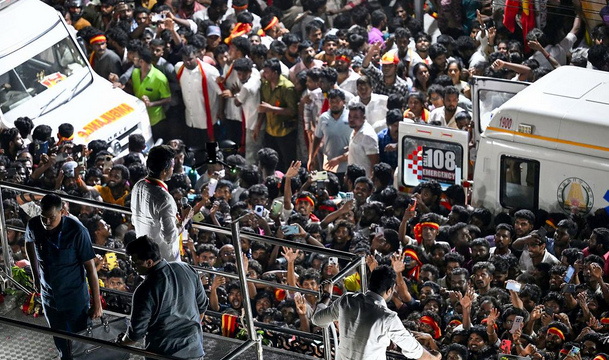 விஜய்யின் அரசியல் கட்சி தொடங்குவது அல்லது அவரது கட்சி உறுப்பினர்களுடனான சந்திப்பு குறித்து யாருக்கும் எந்தவிதமான மாற்றுக் கருத்தும் இல்லை. ஆனால் அவர் தனது கட்சி உறுப்பினர்களையும் ரசிகர்களையும் தேர்ந்தெடுக்கும் விதம் இந்த நாட்டின் அரசியல் முதிர்ச்சி, பொது வாழ்க்கை மற்றும் தனிப்பட்ட பார்வைக்கு உகந்ததல்ல. விளம்பரம் இந்துதமிழ்30வதுசெப்டம்பர் விக்ரவண்டி, மதுரை, திருச்சி, அரியலூர் மற்றும் நாகை ஆகிய இடங்களில் நடைபெறும் விஜய்யின் கூட்டங்கள் இந்தப் பேரழிவின் முன்னோட்டமாகச் செயல்படுகின்றன.