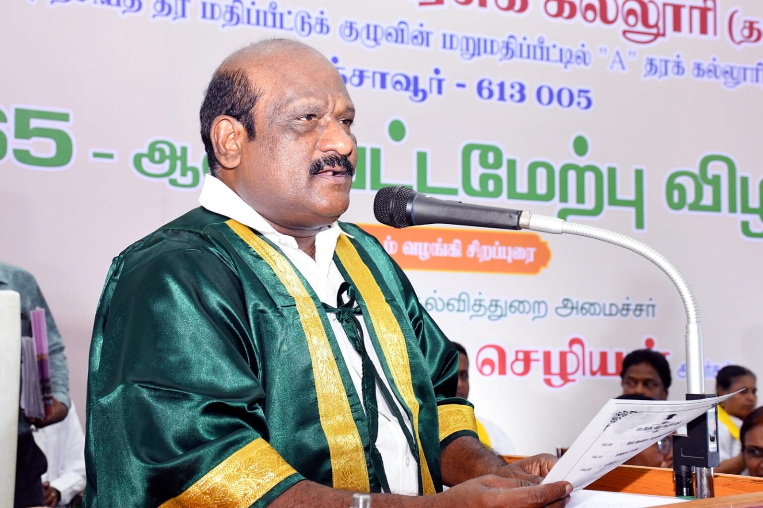 தஞ்சாவூர் மாவட்டம் ஒரத்தநாடு அரசு மகளிர் கலை மற்றும் அறிவியல் கல்லூரியில் நடைபெற்ற 4வது பட்டமேற்பு விழாவில் உயர்கல்வித்துறை அமைச்சர் முனைவர் கோவி.செழியன் மாணவியர்களுக்கு பட்டங்களை வழங்கி பாராட்டினார்..