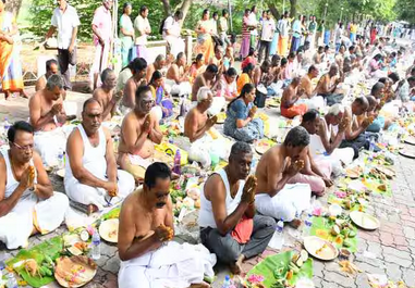 இதன் காரணமாக, அதிகாலை முதல் ஏராளமான அர்ச்சகர்கள் கோயில் குளங்கள் மற்றும் மெரினா கடற்கரைக்குச் சென்று பிரசாதம் வழங்கினர். பலர் நலம் விரும்பிகளுக்கு உணவு வழங்கினர்.