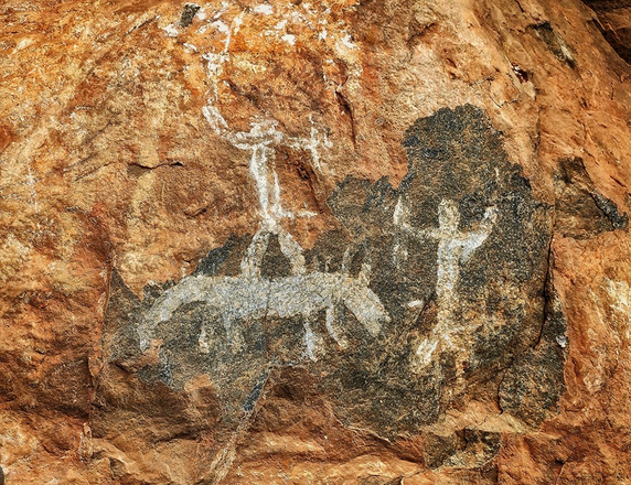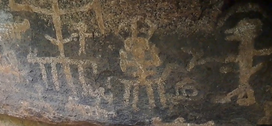 இந்த ஓவியக் குழுக்கள் அனைத்தும் விலங்குகளை வேட்டையாடும்போது நடந்த சண்டைகளாகப் பதிவு செய்யப்பட்டுள்ளன. சண்டையில் வெற்றி பெற்றவர்களின் கொண்டாட்டமும் சித்தரிக்கப்பட்டுள்ளது, மேலும் இனக்குழுவின் தலைவர் ஒரு பல்லக்கில் சுமந்து செல்லப்படுகிறார். வெள்ளை வண்ணம் தீட்டப்பட்ட மனித உருவங்கள் ஆயுதங்களை வைத்திருப்பது போலக் காட்டப்பட்டுள்ளன, அவை இரும்புக் காலத்தைச் சேர்ந்ததாக இருக்கலாம் என்பதைக் குறிக்கிறது.