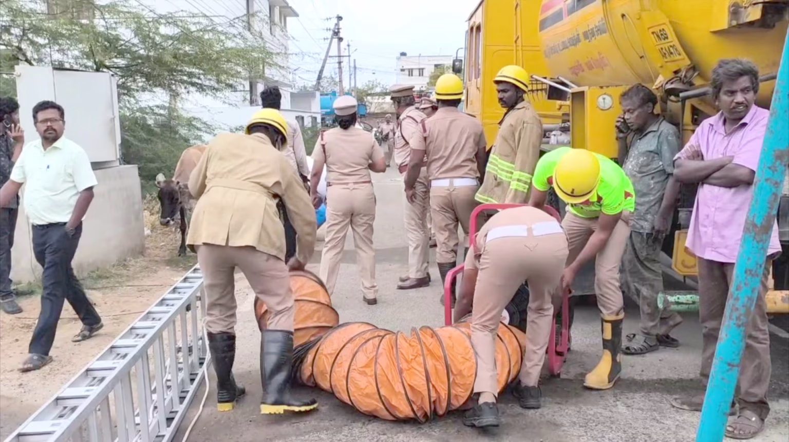 தூத்துக்குடி: ஒப்பந்ததாரர் அலட்சியத்தால் பலியான தூய்மை பணியாளர் போராடி உடலை மீட்டனர். இந்த பரபரப்பான மீட்பு காட்சிகள் கண்கலங்க வைத்துள்ளது.