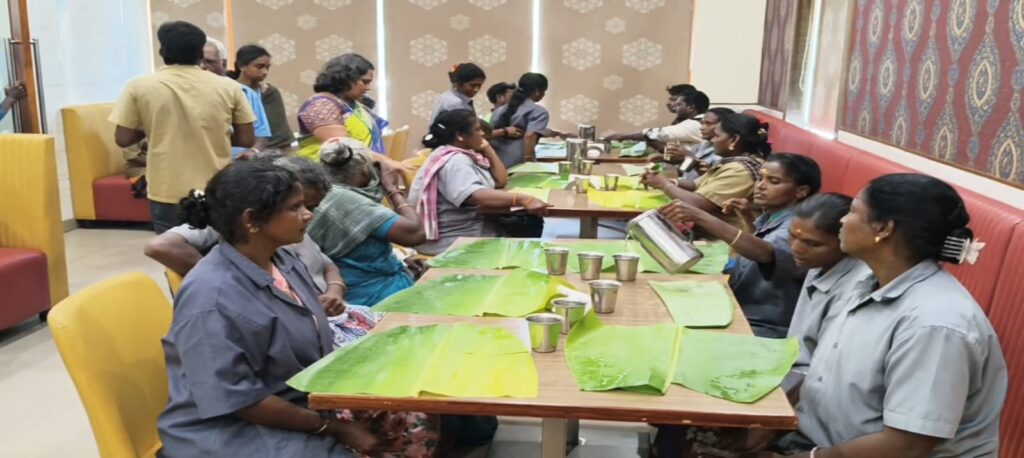 தஞ்சாவூர்: 300 டன் தீபாவளி குப்பைகளை அகற்றி நகரை 4 மணி நேரத்தில் சுத்தமாக்கிய மாநகராட்சி ஒப்பந்த தூய்மை பணியாளர்களுக்கு ரூ.1000ம் அன்பளிப்பும், உயர்தர அசைவ ஹோட்டலில் சுவையான விருந்தும் வைத்து தஞ்சாவூர் ஜோதி அறக்கட்டளை நிறுவனம் கௌரவப்படுத்தி உள்ளது.