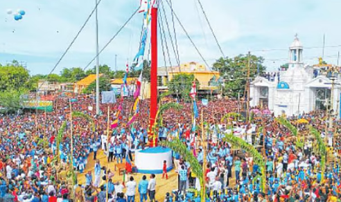 தொடர்ச்சியாக மூன்று திருப்பலிகள் நடைபெற்றன. இதைத் தொடர்ந்து, தூத்துக்குடி மறைமாவட்ட ஆயர் ஸ்டீபன் தலைமையில் காலை 7 மணிக்கு சிறப்பு திருப்பலி நடைபெற்றது. கூட்டு ஊர்வலத்திற்குப் பிறகு, பேராலயத்திலிருந்து கொடியை மேள தாளங்களுடன் பேராலயத்தைச் சுற்றி ஆயர் ஸ்டீபன் கொண்டு சென்றார். பின்னர், காலை 8.45 மணிக்கு பேராலயத்தின் முன் உள்ள கொடி மரத்தில் அன்னையின் கொடியை பிஷப் ஏற்றினார். அந்த நேரத்தில், அங்கு கூடியிருந்த ஆயிரக்கணக்கான பக்தர்கள் ‘மரியே வாழ்க’ என்று கோஷமிட்டனர்.
