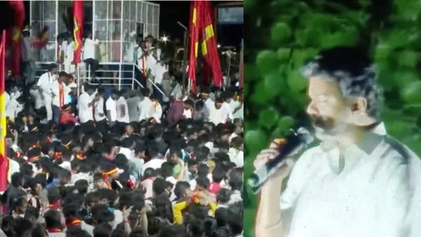 மக்கள் முன் பேசிய விஜய், “உங்களின் அன்பும் பாசமும் எனக்குக் கிடைத்த மிகப் பெரிய செல்வம். நான் அரசியலுக்கு வந்து பணம் சம்பாதிக்க அல்ல, பாசிச பாஜக அரசையும் பாய்சன் திமுக அரசையும் கேள்வி கேட்கத்தான் வந்துள்ளேன். பொய்யான வாக்குறுதிகளைச் சொல்லி திமுக ஆட்சிக்கு வந்தது. 525 வாக்குறுதிகளில் எத்தனை நிறைவேற்றப்பட்டுள்ளன?” என்று கேள்வி எழுப்பினார்.