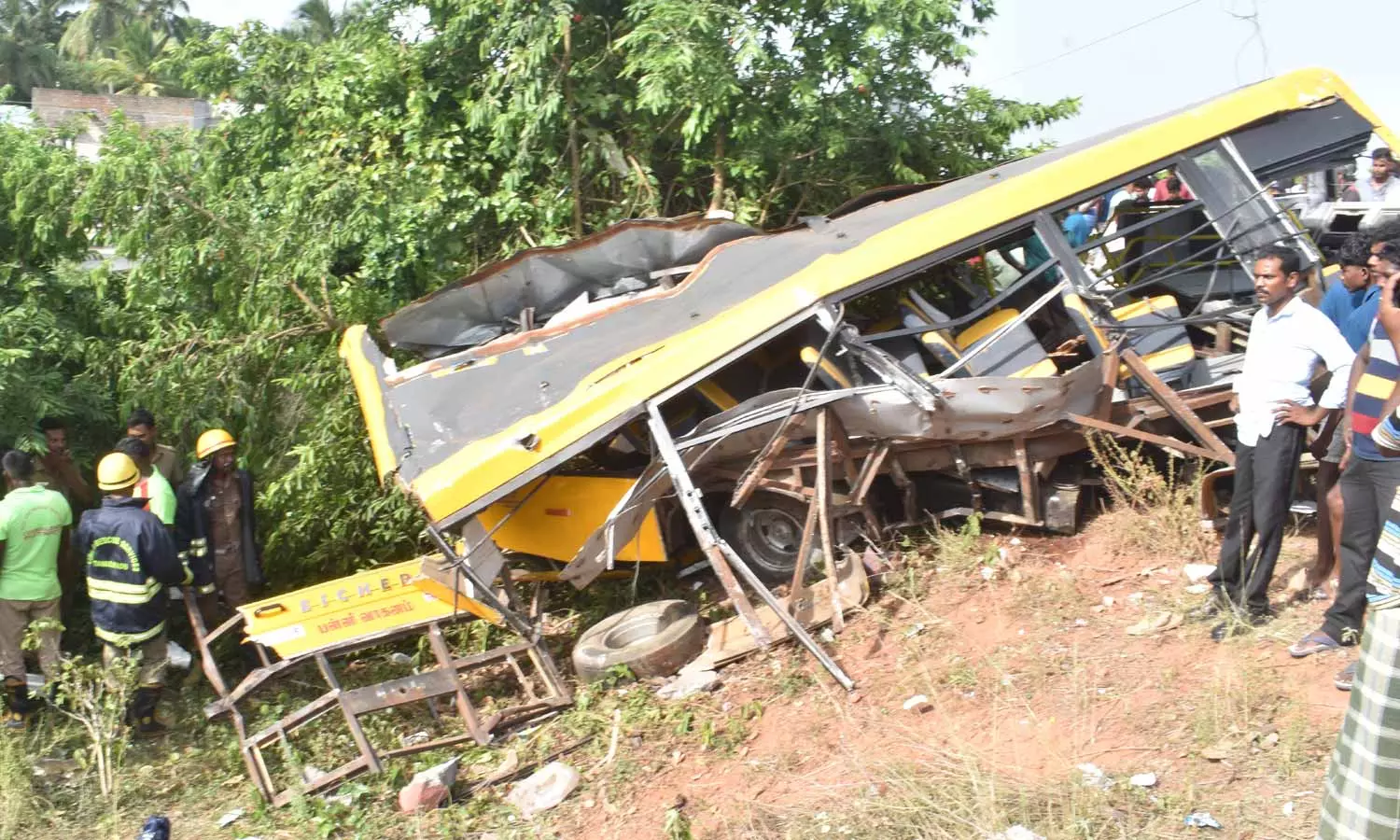 கடலூர் மாவட்டம் செம்மங்குப்பம் அருகே பள்ளி வேன் மீது ரெயில் மோதியதில் 2 மாணவர்கள் உயிரிழந்த சம்பவம் அதிர்ச்சியை ஏற்படுத்தியது. ரெயில் மோதியதுடன் பள்ளி வேன் 50 மீட்டர் தூரத்திற்கு இழுத்துச்சென்றதால் வேன் சுக்குநூறானது.