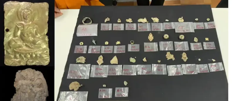 அந்த பானையில் தங்கம், வெள்ளி மற்றும் வெண்கலத்தால் செய்யப்பட்ட 33 பழங்கால ஆபரணங்கள் இருந்துள்ளன. மேலும் இவற்றின் காலம் சுமார் 1,300 ஆண்டுகளுக்கு முந்தையது என்று கணிக்கப்பட்டுள்ளது.