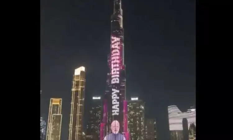 இதுபோல மேலும் பல்வேறு தலைவர்கள் பிரதமருக்கு வாழ்த்து தெரிவித்து உள்ளனர். இந்நிலையில், துபாயில் உள்ள உலகின் மிக உயர்ந்த கட்டடமாக கருதப்படும் புர்ஜ் கலிபாவில் பிரதமர் நரேந்திர மோடியை கவுரவவிக்கும் விதமாக, அவரது புகைப்படத்தை ஒளிரச் செய்து பிறந்த நாள் வாழ்த்து தெரிவிக்கப்பட்டது.