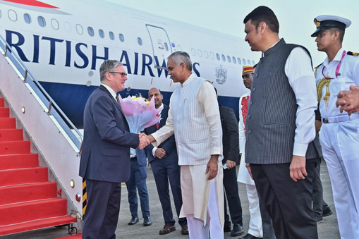 மும்பை: மும்பை விமான நிலையத்தில் அவரை மகாராஷ்டிரா ஆளுநர் ஆச்சார்ய தேவ்ரத், முதல்வர் தேவேந்திர ஃபட்னாவிஸ், துணை முதல்வர்கள் அகிலேஷ் ஷிண்டே மற்றும் அஜித் பவார் ஆகியோர் வரவேற்றனர். இங்கிலாந்து பிரதமராக கெய்ர் ஸ்டார்மர் இந்தியாவுக்கு வருவது இதுவே முதல் முறை. அவருடன் இங்கிலாந்து அமைச்சர்கள் மற்றும் ஒரு வணிகக் குழுவும் செல்கிறது.