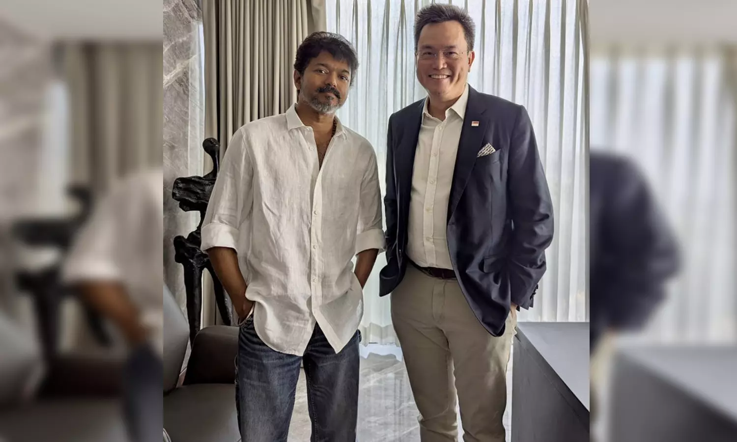 அந்த பதிவில் அவர் கூறுகையில்,”இன்று மதியம் கோலிவுட் சூப்பர் ஸ்டார் தளபதி விஜய்யை சந்தித்ததில் மகிழ்ச்சி. அவர் நடித்த தமிழ் படங்களில் உங்களுக்குப் பிடித்த படம் எது? ‘” என்று அவர் குறிப்பிட்டுள்ளார்.