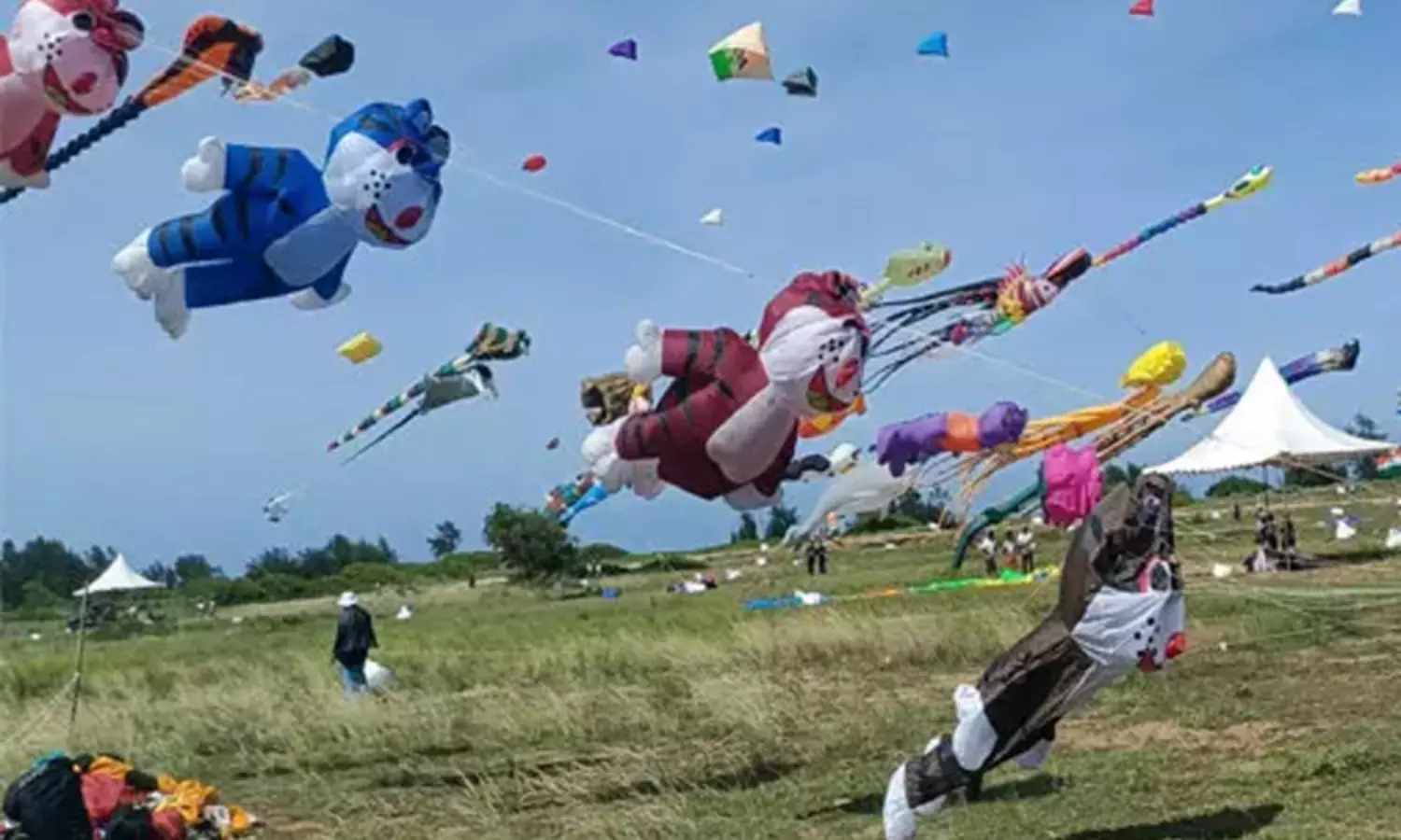 இதில் வண்ணமயமான நூற்றுக்கும் மேற்பட்ட பட்டங்கள் வானில் பறக்கவிடப்பட்டன.