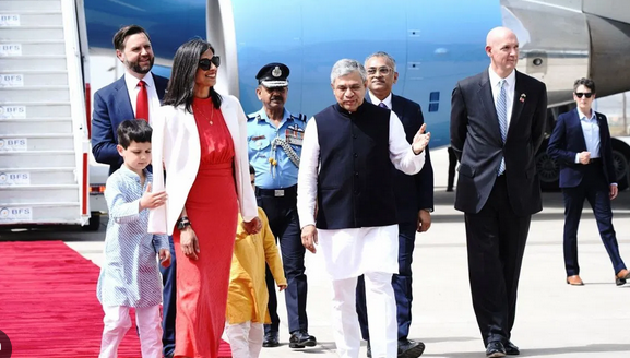 ஜே.டி.வான்ஸை மத்திய அமைச்சர் அஸ்வினி வைஷ்ணவ் வரவேற்றார். மூன்று சேவைகளின் அணிவகுப்பு மரியாதையை ஜே.டி.வான்ஸ் பெற்றார். இந்தியா வந்துள்ள ஜே.டி.வான்ஸ், தனது குடும்பத்தினருடன் அக்ஷர்தாம் கோயிலுக்குச் சென்று பிரார்த்தனை செய்ய உள்ளார். ஜே.டி.வான்ஸ் இன்று மாலை டெல்லியில் பிரதமர் மோடியை சந்திக்கிறார்.